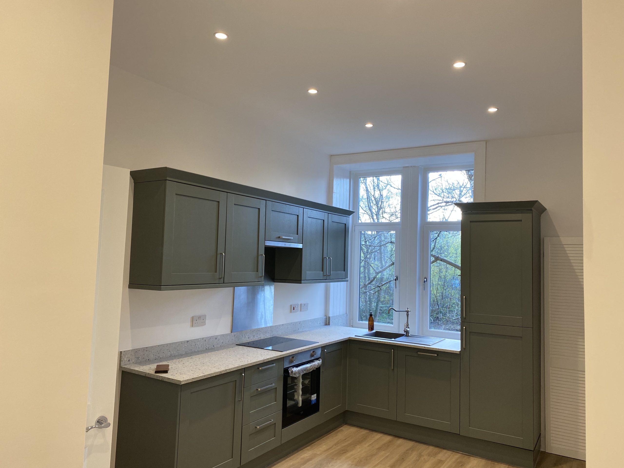 This extensive refurbishment project began with aligning the entire space from floor to ceiling, ensuring every room was both functional and aesthetically pleasing. A brand-new bathroom and kitchen were designed and installed, incorporating modern fixtures and finishes. The majority of the appliances and fittings were relocated strategically to maximize space and enhance the flow of the property. In the kitchen, new walls and ceilings were built to create a fresh and contemporary feel. Additionally, all walls throughout the property were realigned, re-plastered, and finished with high-quality paint, providing a sleek and polished finish to every room.